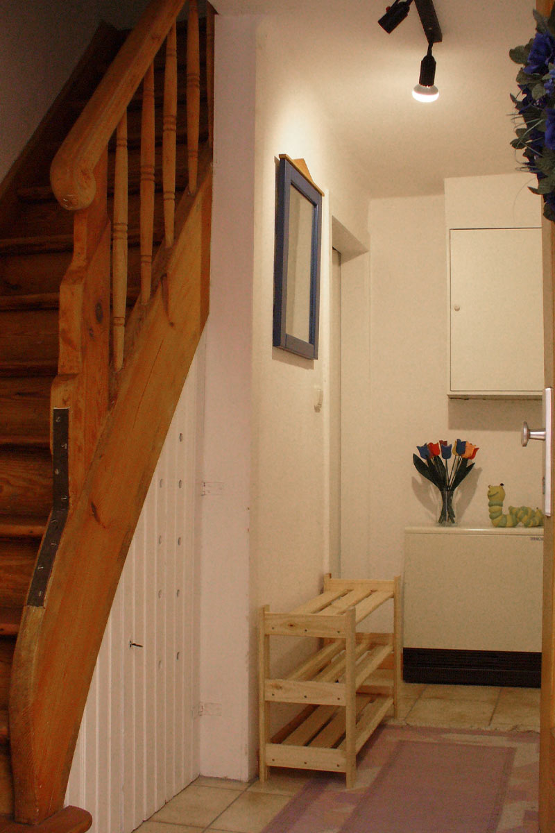 Das Ferienhaus ist 70qm groß und enthält eine Wohnküche, ein Wohnzimmer, ein Schlafzimmer im 1. und ein Schlafzimmer im 2. Stock (mit je einem Doppelbett), einer Toilette, einem Bad mit WC und einer Terasse. Das Ferienhaus ist für vier Personen geeignet.